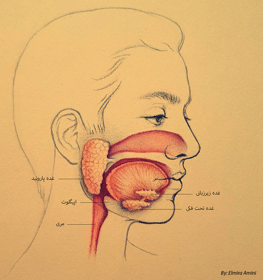 نمای کلی غدد مسئول ترشح بزاق