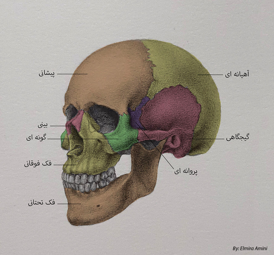 نمایی سه رخ از استخوان های جمجمه: