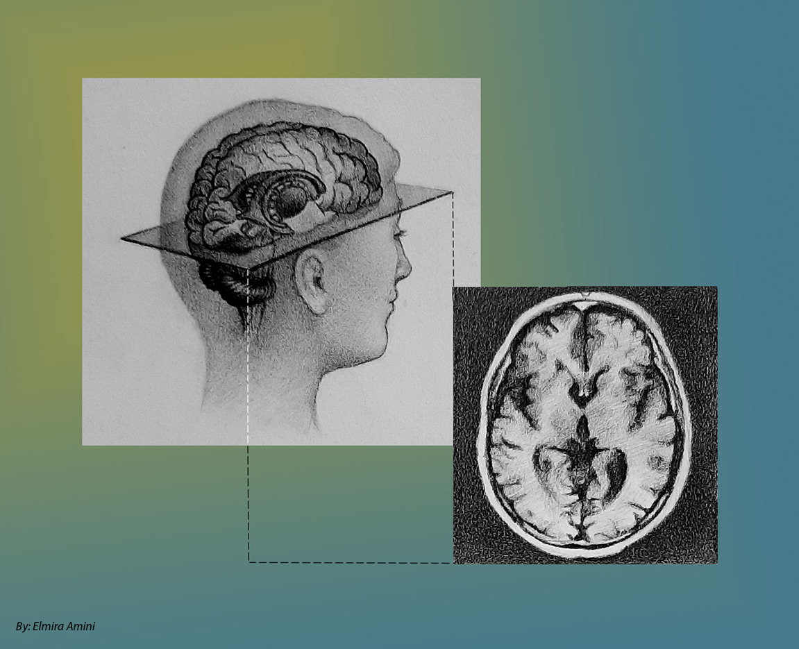 نمای حاضر تصویری جهت تفهیم نحوه عملکرد تصاویر لایه لایه به دست آمده از ام آر آی مغزی است. در واقع هر تصویر ام آر آی نشان دهنده لایه ای مشخص از مغز است.